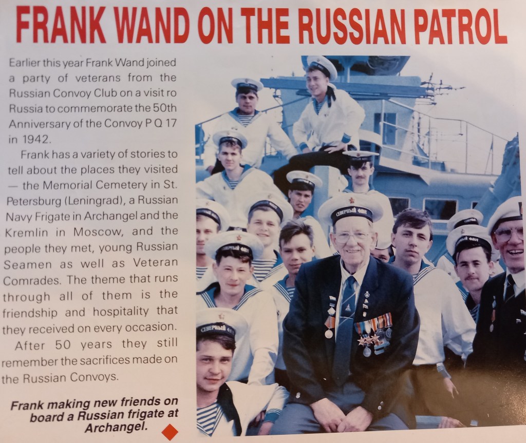 For most of that time, my father was a combatant serving with the Royal Navy in the Atlantic and elsewhere. His military service was to leave a lasting impression on him. In his later life it lead to recognition, respect and military honour awarded by a grateful Russian people in a poignant ceremony aboard a warship on the Baltic.