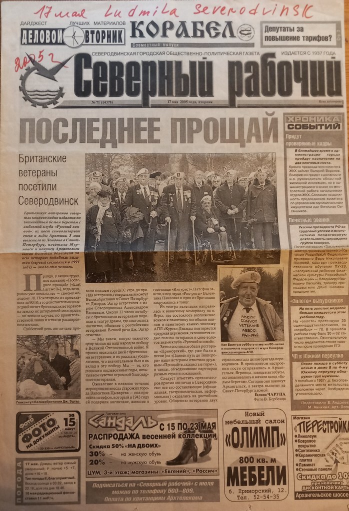 My father was fortunate to be one of them, and in 1992 he made the first of two trips to Russia, returning to the Arctic port of Archangel for the first time in over forty years.