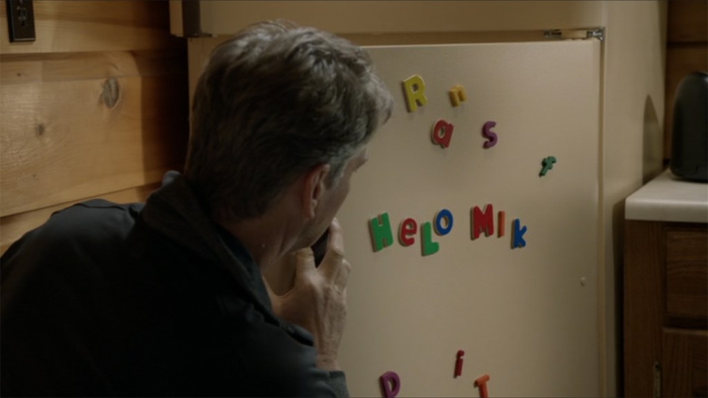 Several images are used, many having a supernatural character. Alphabet fridge magnets (which young Kyra calls ‘Fridgerfator People’) magically spell out cryptic messages and words, as though clues to the mystery are being provided by an unseen ally.