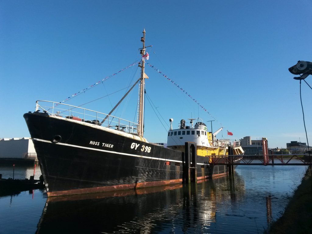 A monument to Ross’s links to the port of Grimsby can still be seen at a berth on the River Freshney, close by the old fish dock basin. Here, one of the company’s trawlers, Ross Tiger (GY398) – the UK’s oldest surviving side trawler – is now a floating museum piece operated by the Grimsby Fishing Heritage Centre.
