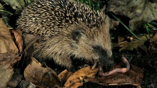 For some mammals, however, the dwindling daylight signals a time for sleep. For them, the search for food is over for now. Dormice lie in nests of dry grass in sheltered hollows, cold and unmoving. Their breathing is shallow, heartbeats slow. Hedgehogs settle to sleep on beds of leaves.