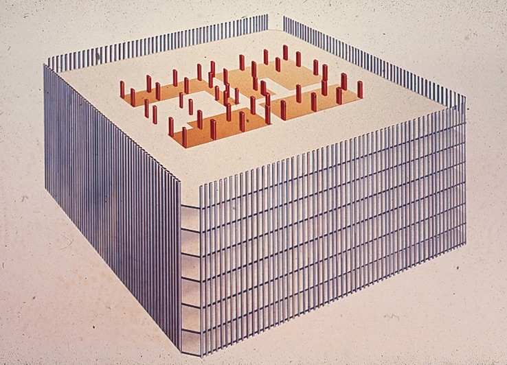The buildings used high-strength, load-bearing perimeter steel columns which acted as Vierendeel trusses. Although the columns themselves were lightweight, they were spaced closely together, forming a strong, rigid wall structure.