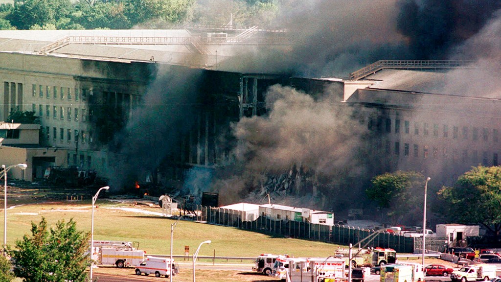 Coordinated by the group’s boss, Osama bin Laden, nineteen Muslim terrorists hijacked four commercial airplanes, deliberately crashing two into the upper floors of the North and South Towers of the World Trade Center complex and a third plane into the Pentagon in Arlington, Virginia. The fourth hijacked airliner crashed in Shanksville, Pennsylvania.