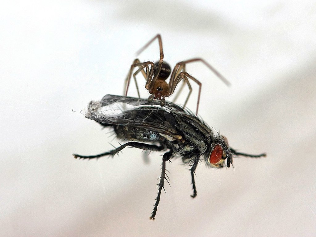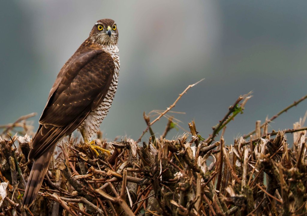 Like all habitats, the hedgerow is a harsh environment where life is a story of eating and being eaten. On the bramble the spider catches the fly, but is eaten by the foraging whitethroat, which itself may fall prey to the sparrowhawk.