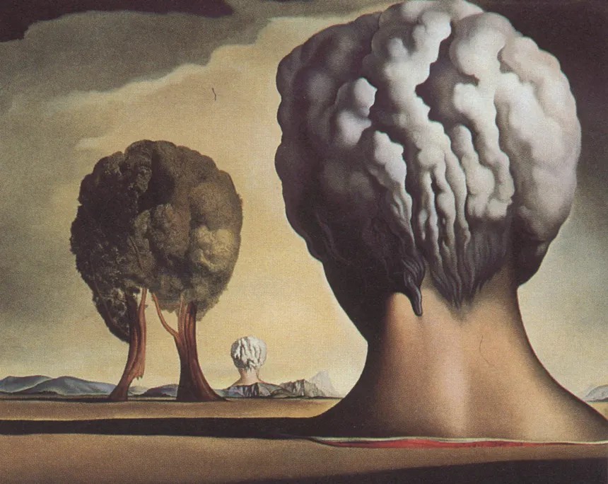 Looking back, I feel sure that it was the fabulous colours that first drew me into this piece. Here we have photorealism, colour-washed with riddles. It’s surprisingly naturalistic—browns, blues, muted skin tones—but the effect is totally … well, surreal. That’s part of Dalí’s genius. He paints dreamlike imagery in such a precise, almost photographic style that it feels more real than reality itself.