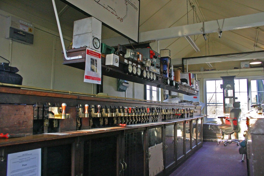 Inside, the signalman (or woman, I guess) operated a frame of levers that controlled signals and points—you see, whilst drivers may adjust a train’s speed, it’s a signalman who ‘steers’ it through his control of the tracks.