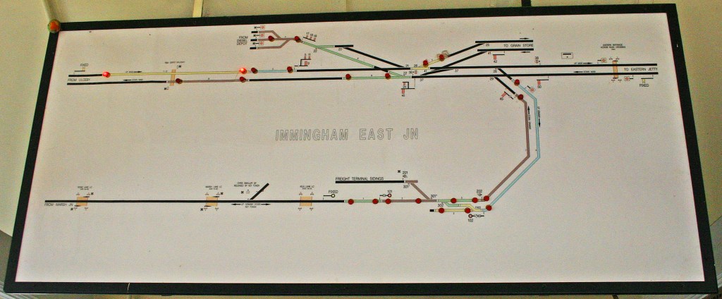 The gantry, about eighteen inches wide had, at that time, encircled the railway signal box at Immingham East Junction, and I was perched there cleaning its windows. I was in my mid-teens at the time.