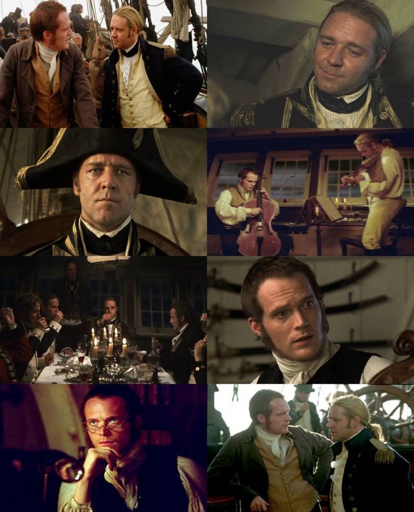 They’re a captain and his surgeon, but also friends who take time out to play violin and cello together in the quiet between storms.