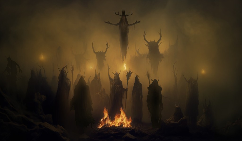 The drum beats escalate, rattles shake, antlers clash, and a chorus of voices rise together in defiance and in awe. Instruments made from bone, hide, and horn blur the line between music and ritual object. Every sound carries the weight of an ancient hand, an ancient voice, an ancient purpose.