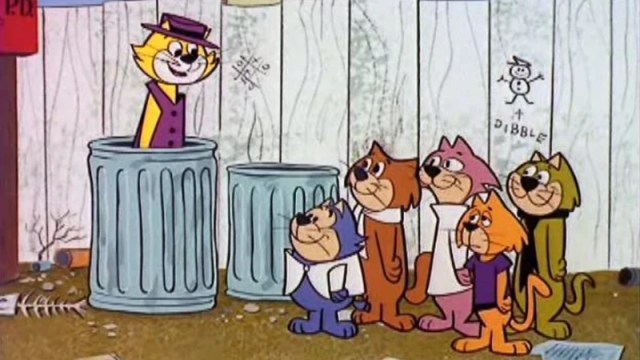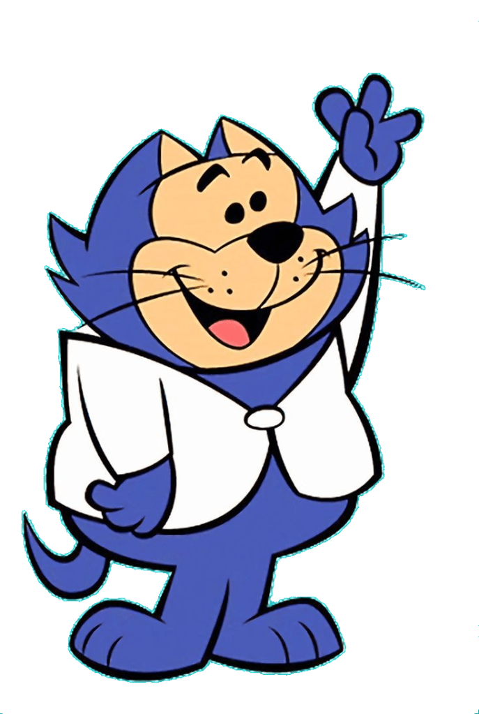 TOP CAT–or Boss Cat, as he was confusingly renamed in the U.K. (to avoid clashing with a brand of cat food) — was my first mob boss. He ran a crew of loyal alley cats: Benny the Ball, Choo-Choo, Fancy-Fancy, Spook, and Brain.