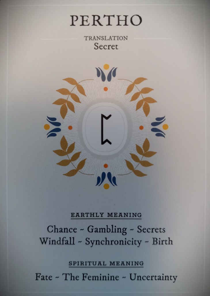 Pertho, rune of mystery and fate, represented the hidden turning of my life — a throw of destiny’s dice that would change everything.