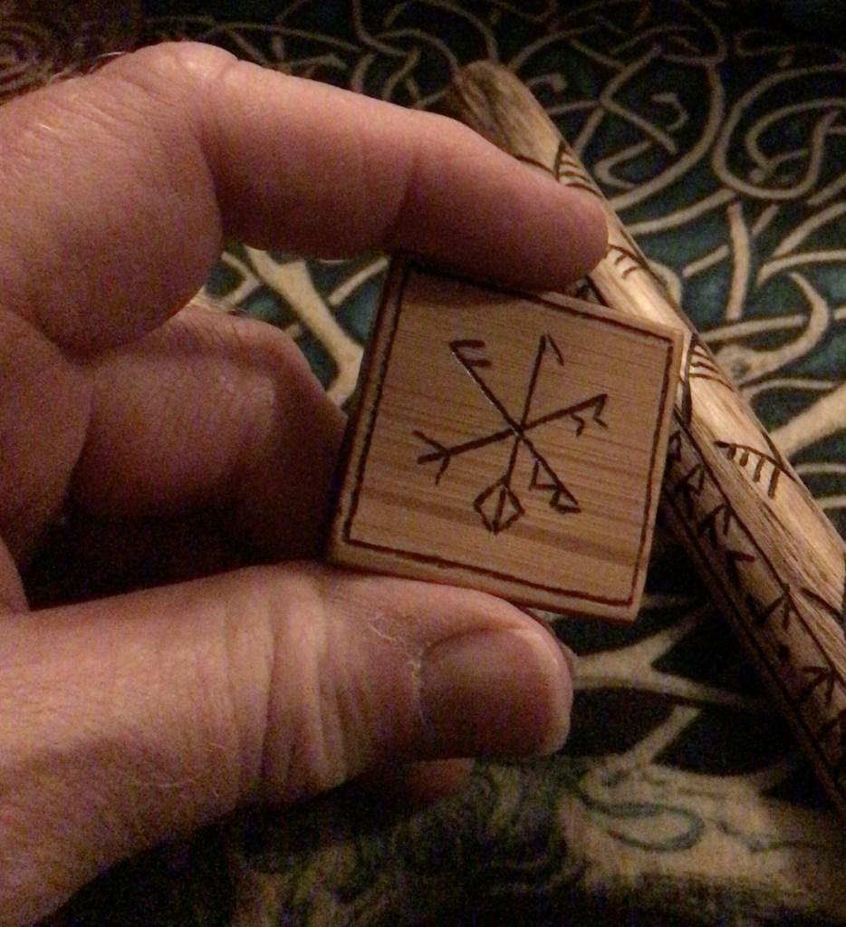 During a particularly stressful period of my life — one that would soon culminate in a nervous breakdown — I created a stave rune charm; one to carry with me in my pocket — I have it with me right now.