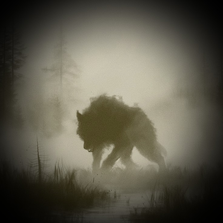 The Black Shuck of Lincolnshire is a spectral hound said to roam lonely lanes, churchyards, and coastal paths, its eyes glowing like burning coals.