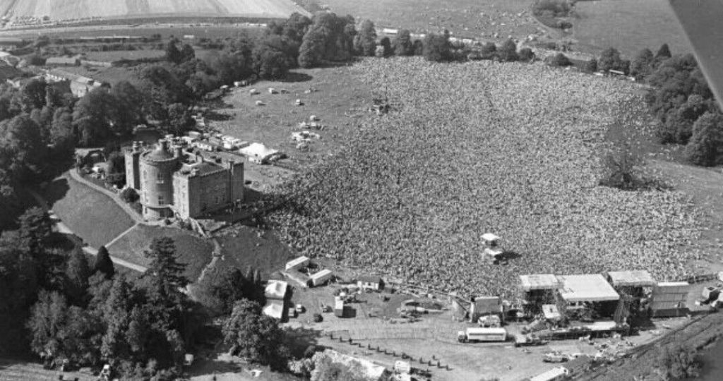 Slane is unlike any other concert venue. The castle sits high above the picturesque River Boyne, its grounds falling away in a sweeping, natural bowl that forms a perfect amphitheatre. From the crest of the hill, you could see everything — the distant stage, the river winding through the valley, and the huge mass of humanity gathering on the grass.